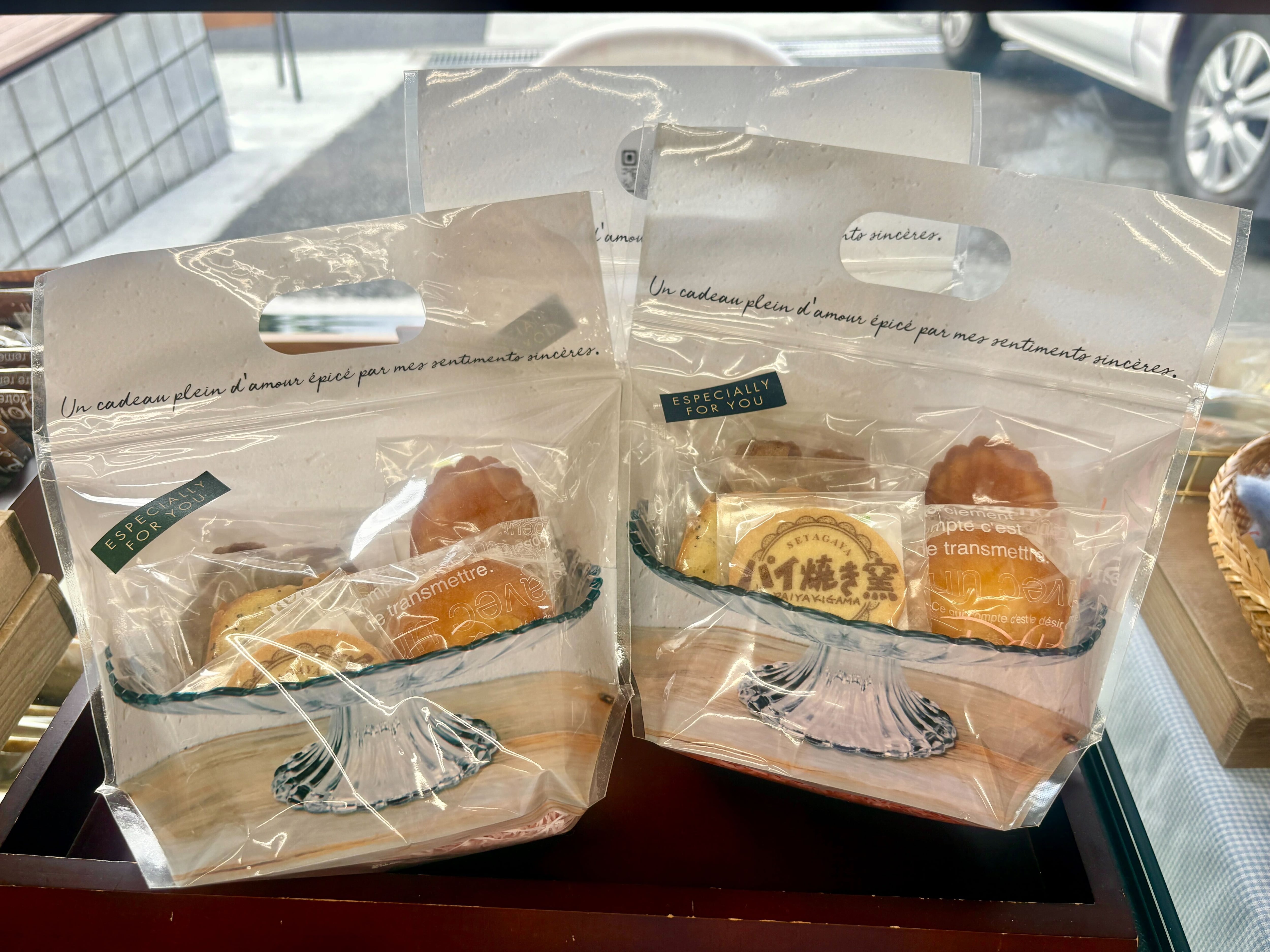 パイ焼き窯定番の焼き菓子やクッキーを季節の袋にお入れします。